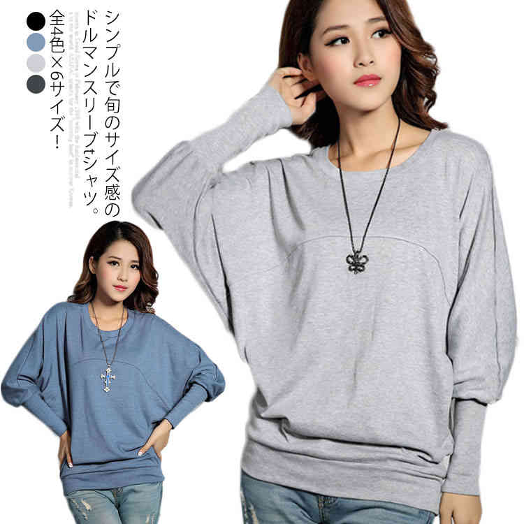 全4色×6サイズ Tシャツ ドルマンスリーブ 長袖Tシャツ カットソー トップスレディースファッション トップス Tシャツ カットソー