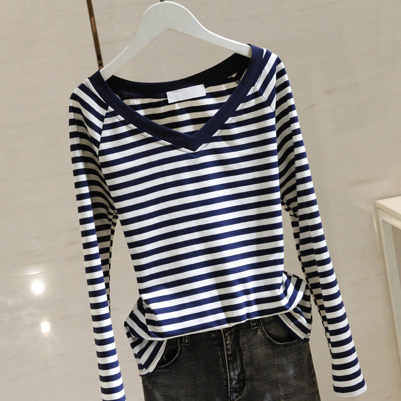 インナー Tシャツ 綿 コットン ボーダー柄 長袖Tシャツ Vネック レディース トップス ファッション 通勤 オフィス カジュアル スリム デイリーコーデ