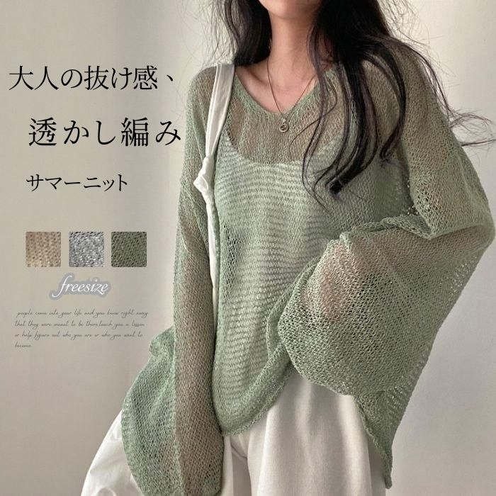透かし編みデザインがおしゃれなサマーニット♪シンプル カジュアル かわいい 涼しい トレンド デイリー パーディー