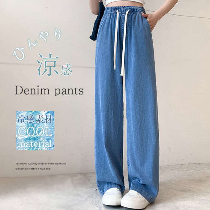デニム ワイドパンツ 冷感素材 レディース デニムパンツ リラックスパンツ ゆったり 涼しい♪レディースファッション ボトムス パンツ