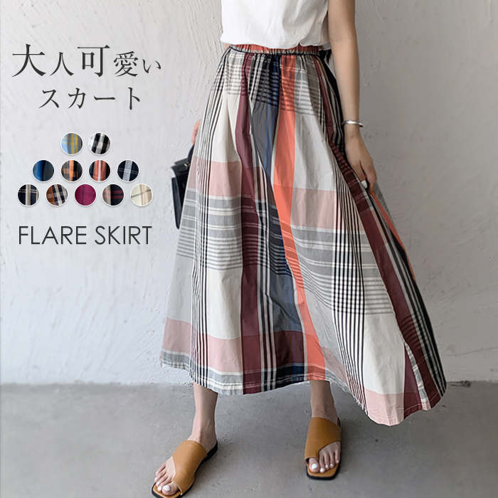 大柄なチェックが目を惹く抜群のスカート、一枚あればコーデしやすいレディースファッション ボトムス スカート