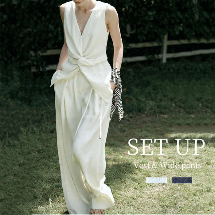 大人ハンサム シワ加工 ベスト & ワイドパンツ 上下セット 上下 薄手 涼しい 大きいサイズ S M L ホワイト ブラック 白 黒 春夏 春秋 演奏会 謝恩会 披露宴 お食事会 結婚式 ♪