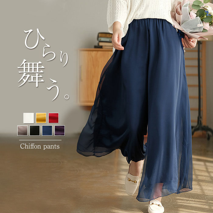 オシャレの幅が広がる ワイドパンツ パンツスカート レディース スカーチョ シフォン チュール 20代 30代 40代 黒 白 ブラック ホワイト 春夏