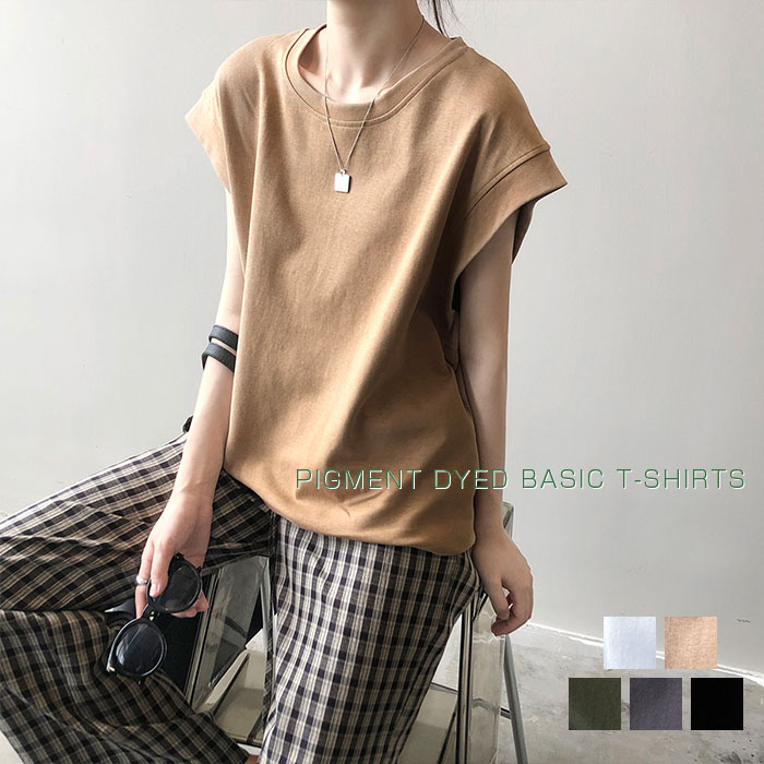 フレンチスリーブ 半袖 Tシャツ レディース オーバーサイズ コットン 体型カバー 春 夏レディースファッション トップス Tシャツ カットソー