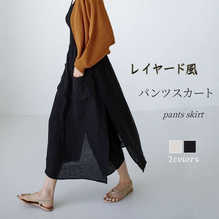 パンツ スカート レディース スカーチョ ワイドパンツ 春 夏 透け感 ロングスカート 9分丈 ボトムス レイヤード 重ね着風 綿 麻 コットン リネン フェイクスカート 涼しい スカートパンツ リラ