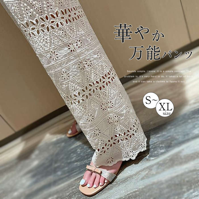 新作~ コットン素材 レースワイドパンツ Lace pants 20代 30代 40代 50代 大きいサイズ ホワイト 白 アイボリー 春 夏 サマーコーデ デート お出かけ リゾート 日常 お家 ♪