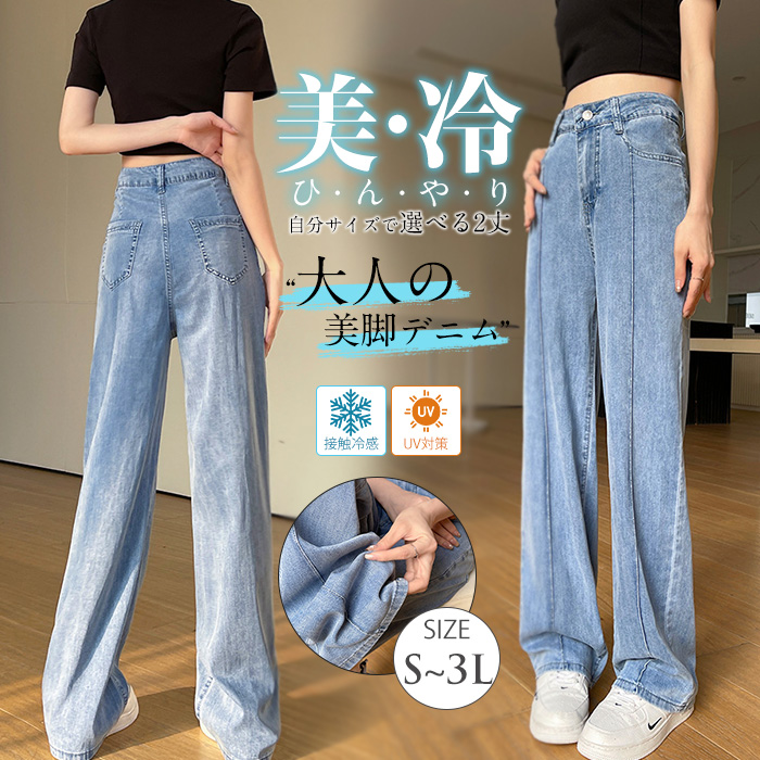 清涼感up 暑い季節の デニムパンツ 大きいサイズ S~XXL 春夏 高身長対応 低身長対応 普通丈 丈長め Wide Pants プレゼント 贈り物 ギフト 誕生日 母の日 20代 30代 40代