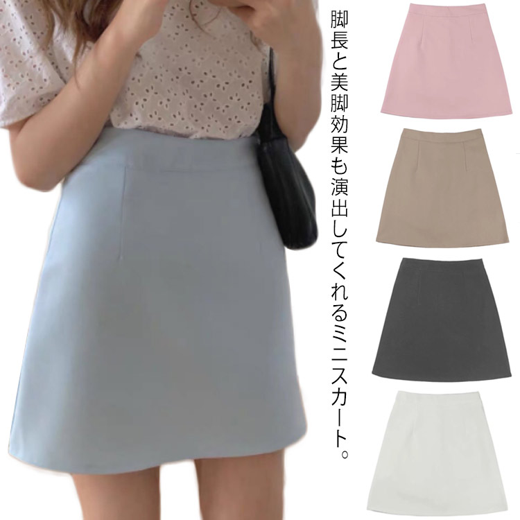 ハイウエスト ボトムス 台形 春 レディース ライン ピンク ショート丈 タイトスカート 無地 夏 カジュアル オフィス 美脚 きれいめ おしゃれ フェミニン ブルー ミニスカート