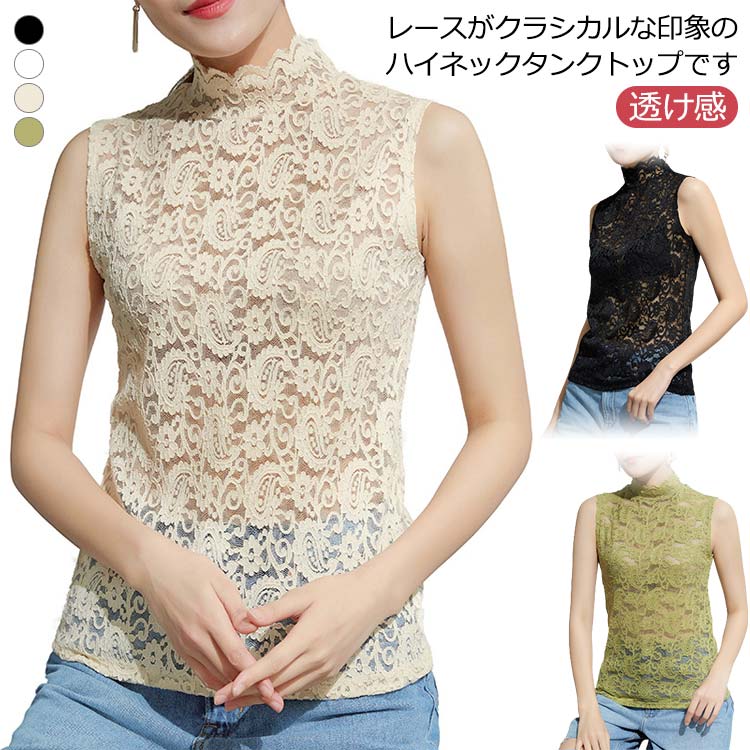 タンクトップ ノースリーブ トップス カットソー シアートップス 大きいサイズ 紫外線対策 透け感 薄手 サマー 春夏 重ね着 レイヤード プチハイネック