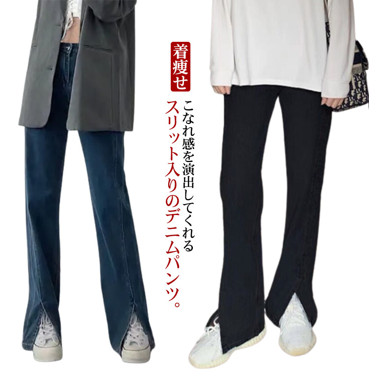 デニムパンツ 体型カバー スリット入り レディース 春 夏 秋 ジーンズ ボトムスレディースファッション ボトムス パンツ