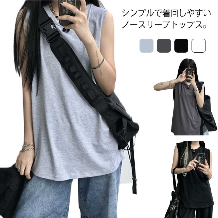レディース シンプル 無地 Tシャツ Uネック ロング丈 ゆったり 夏 ノースリーブ 袖なし タンクトップ おしゃれ レディース 韓国風 ファッション 大きいサイズ トップス プチプラ かっこいい 春