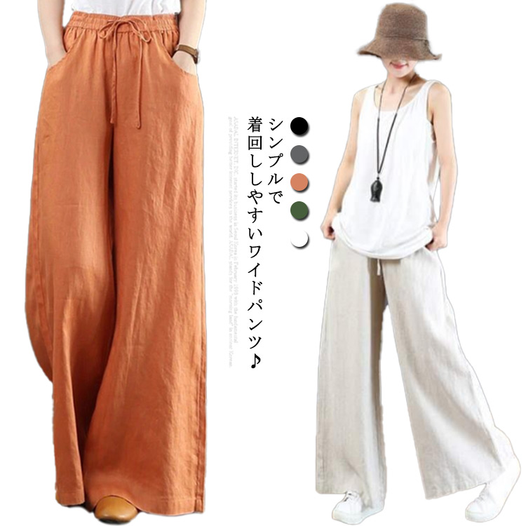リネンワイドパンツ レディース フレア ロングパンツ 母の日 プレゼントレディースファッション ボトムス パンツ
