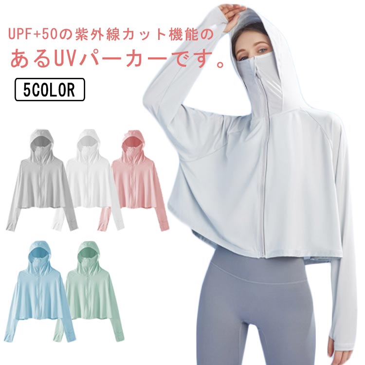 ラッシュガード UVパーカー UPF50+ UVカット アウトドア 長袖 接触冷感 薄手 ジップアップ バイザー パーカー レディース ラッシュパーカー マスク つば 日焼け止め アームカバー 帽子