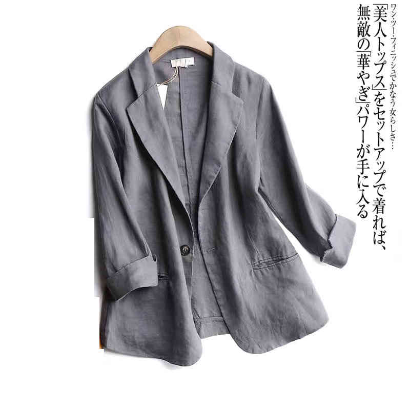 ジャケット 綿 麻 レディース ゆったり 長袖 ブレザー アウター シャツ ブラウン 夏用 コート 大きいサイズ 無地 カジュアル 春 秋