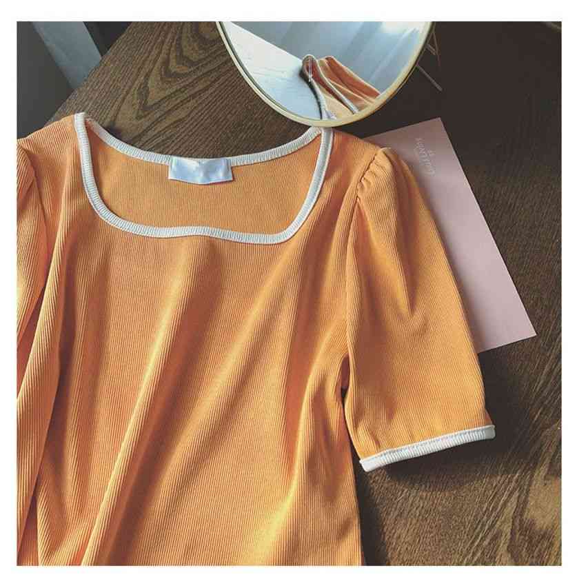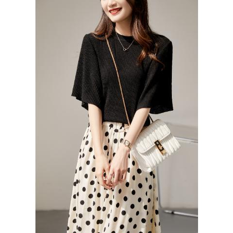 サマーニット 配色 トップス 着痩せ Tシャツ プルオーバー カジュアル 無地 着回し ニット ワンマイルウェア春 春服 韓国