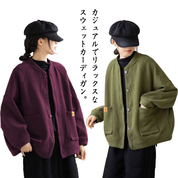 スタジャン レディース スウェット カーディガン トレーナー トップス ブルゾン ビッグシルエット 体型カバー コート コットン ジャケット 裏起毛 裏起毛なし ジャンバー ストリート 長袖