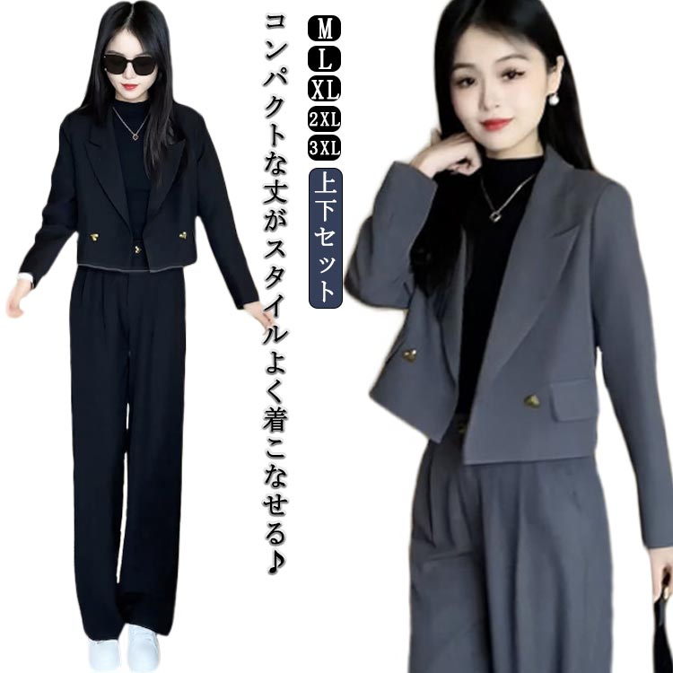 高見え パンツドレス 小柄さんにもオススメ コンパクトジャケット タック スラックス 2点セットアップ 春 秋 夏 冬 カジュアル パンツスーツ セットアップ
