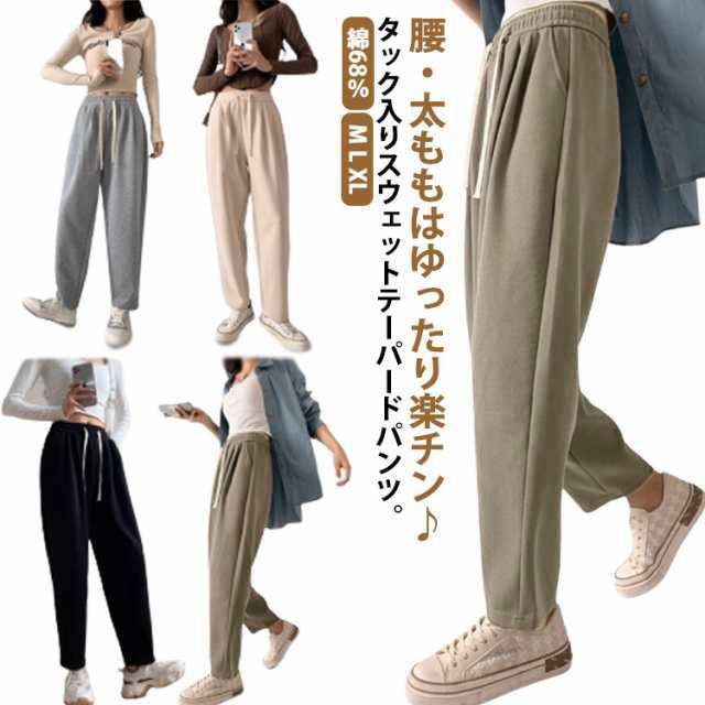 下半身をカバーする タックル入り スウェット テーパードパンツ サルエルパンツ 柔らかい ジャージレディースファッション ボトムス パンツ