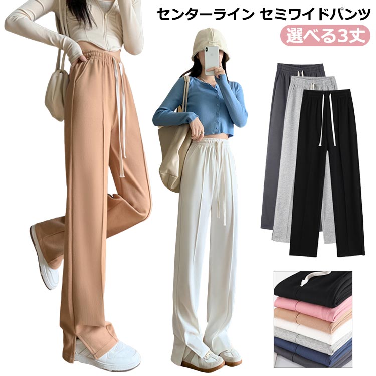 高身長さんも低身長もピッタリ合うサイズが見つかる♪ 選べる3丈 ピンタック センターシームパンツ 細見え スエットパンツ リラックスパンツ 楽チン ポケット 脚長 ワンマイルウェア