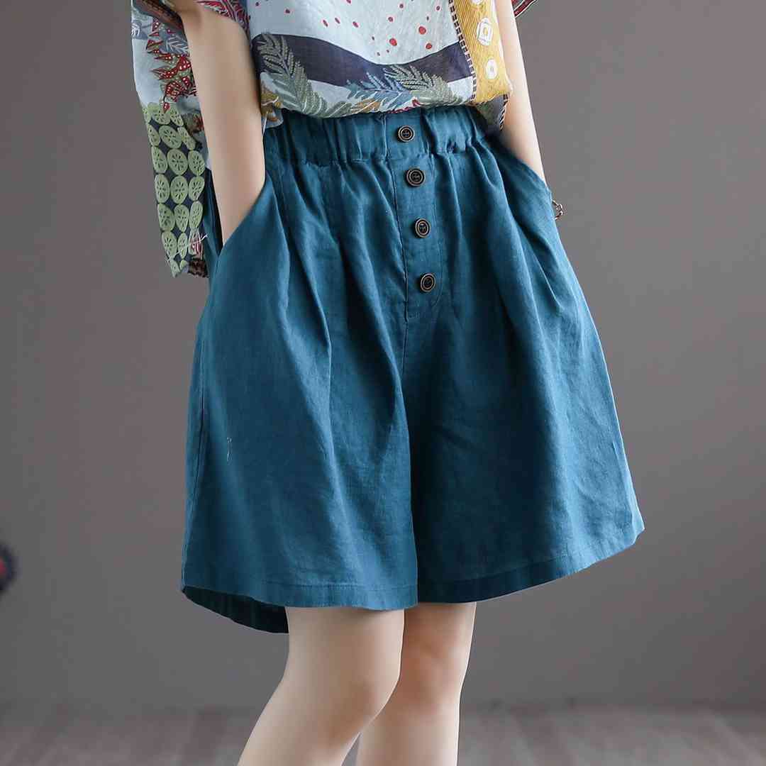 ゆったり ワイド シンプル 綿麻混 ナチュラル カジュアル ラフ 短パン ショートパンツレディースファッション ボトムス パンツ