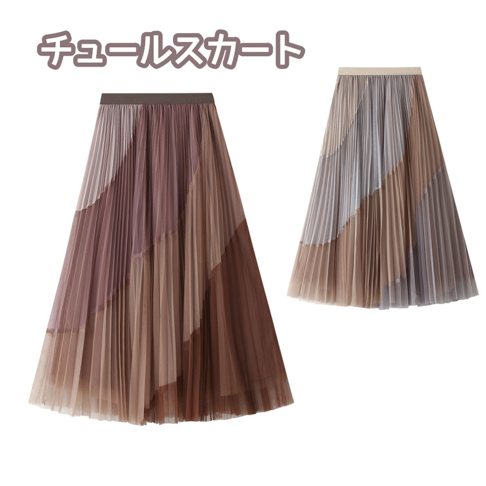 6色展開プリーツスカート ウエストゴム 魅力 お洒落 無地 裏地付き 着痩せ 体型カバー お出かけ社交ダンス スカート メッシュ 広がる裾 エレガント モダンダンス コーラス 大きい