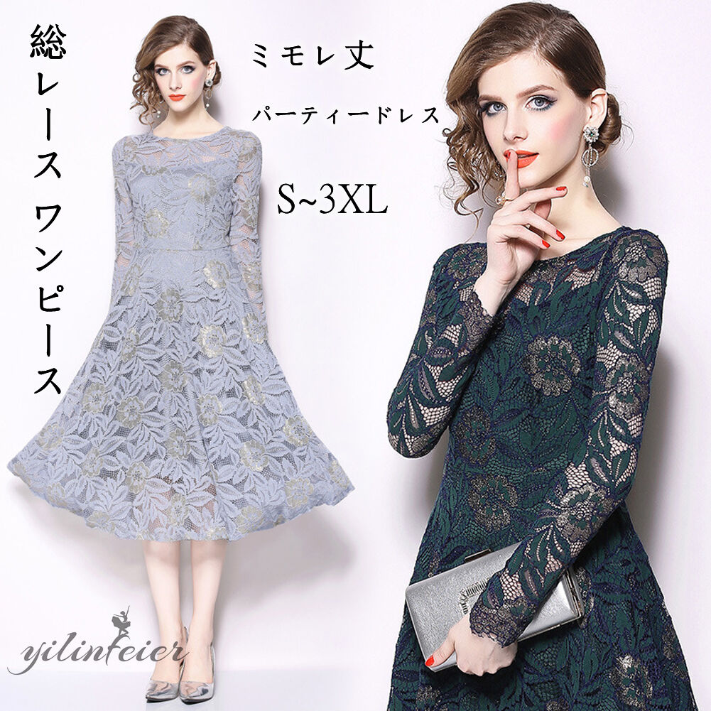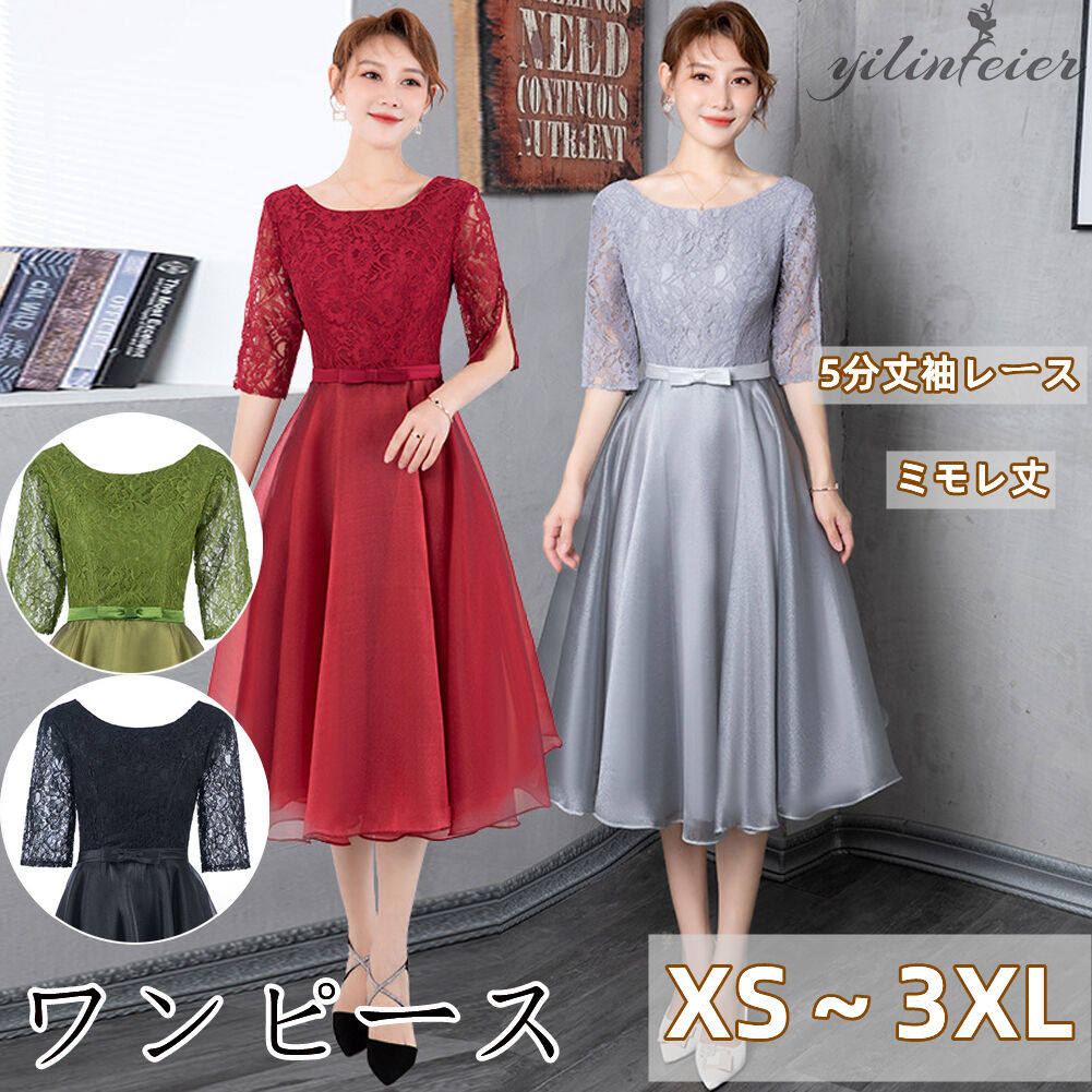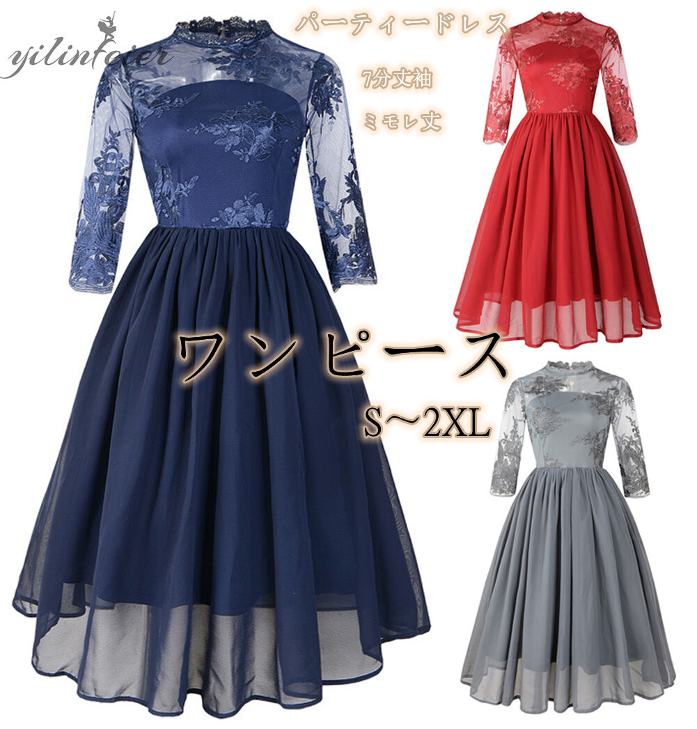 ワンピース ドレス ミモレ丈 Aライン レディース おしゃれ 結婚式 二次会 演奏会 ミモレドレス ディナー 大きいサイズ 大人 上品 20代 30代 40代 春 夏 秋 冬 二次会ドレス