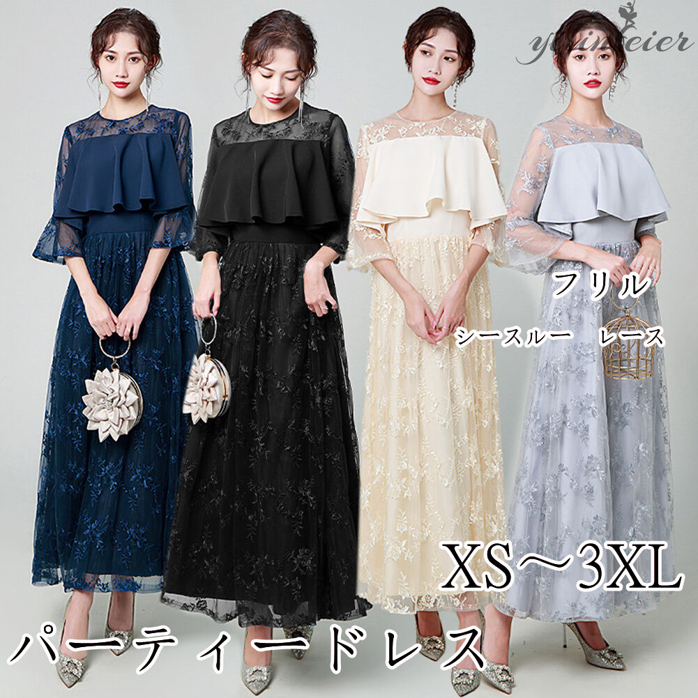 ワンピース ドレス ロング丈 Aライン レディース 結婚式 二次会 演奏会 ロングドレス ディナー 大きいサイズ 大人 上品 20代 30代 40代 春 夏 秋 冬 二次会ドレス