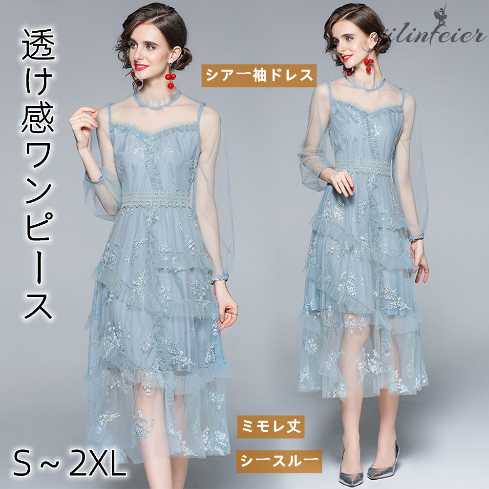 ワンピース ドレス ミモレ丈 ロング丈 ライン レディース 結婚式 二次会 演奏会 ロングドレス ディナー 大きいサイズ 大人 上品 20代 30代 40代 春 夏 秋 冬 二次会ドレス