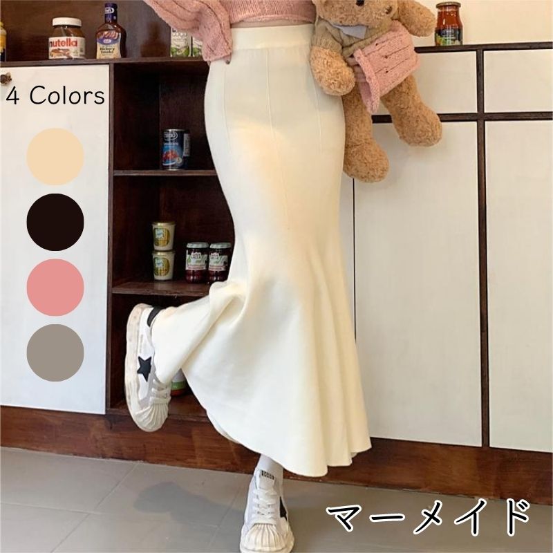 マーメイドスカー 脚を綺麗に見せるマーメイドシルエット ロングスカート レディース スカート お洒落 エレガント レディースニット 痩せて見える フレアスカー 揺れスカート