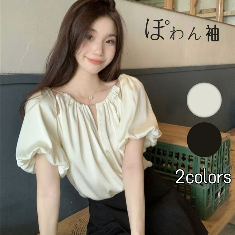 五分袖 半袖 パフスリーブ ボリューム袖 バルーンスリーブ 袖コンシャス ぽわん袖 プルオーバー 体型カバー 二の腕カバー 無地 カジュアル きれいめ フェミニン 大人 可愛い おしゃれ