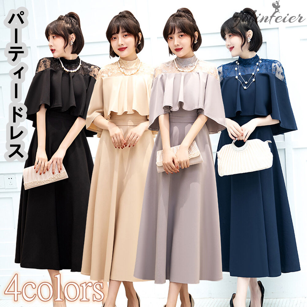ワンピース ドレス ミモレ丈 ロング丈 Aライン レディース 結婚式 二次会 演奏会 ロングドレス ディナー 大きいサイズ 大人 上品 20代 30代 40代 春 夏 秋 冬 二次会ドレス