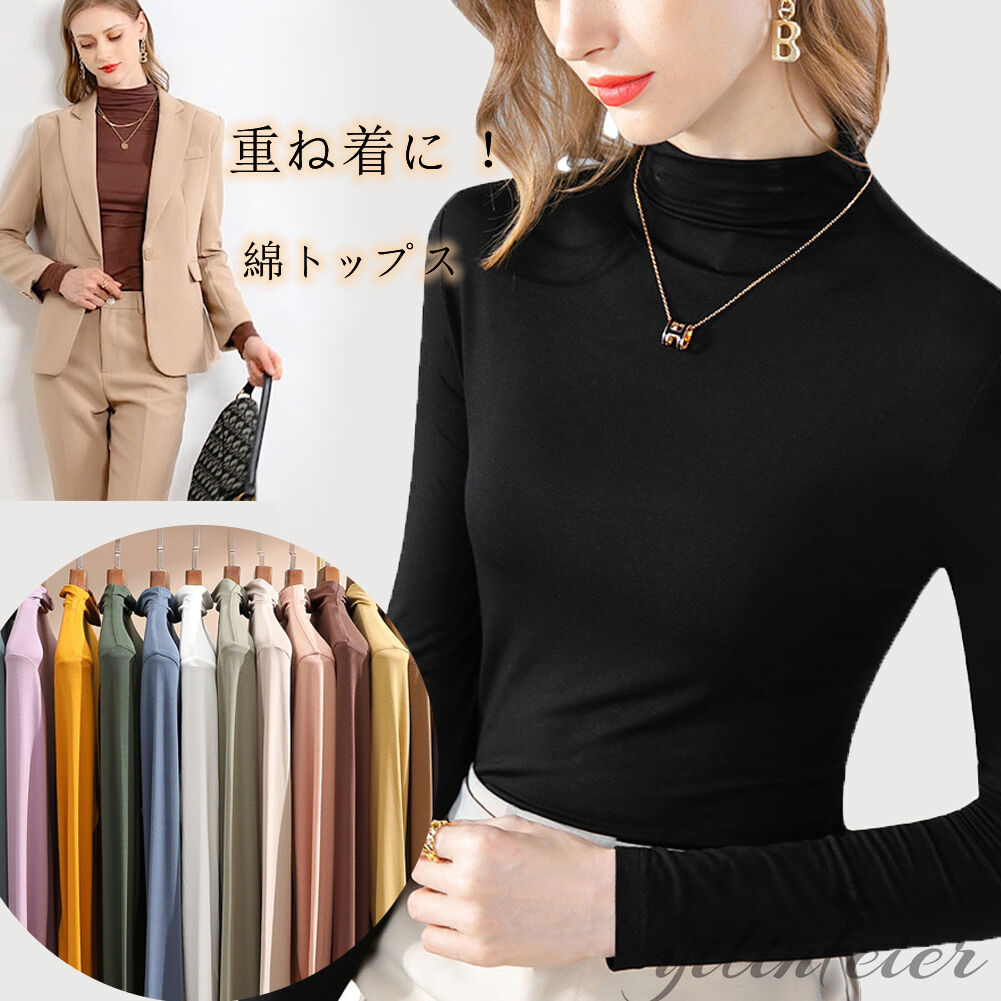 インナー 綿 薄手 タートル レディース トップス カットソー 長袖 ハイネック 重ね着 インナー レイヤード シャツ タートルネック シアー切替カットソー シースルー おしゃれ 薄手