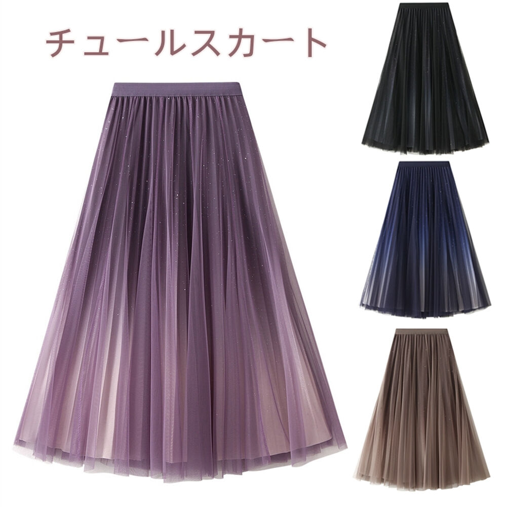 4色展開プリーツスカート ウエストゴム 魅力 お洒落 無地 裏地付き 着痩せ 体型カバー お出かけ社交ダンス スカート メッシュ 広がる裾 エレガント モダンダンス コーラス 大きい