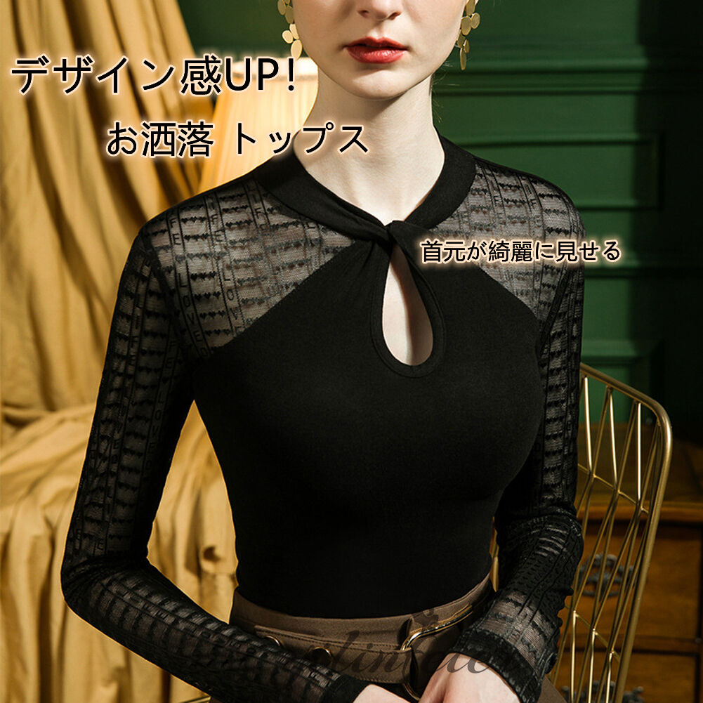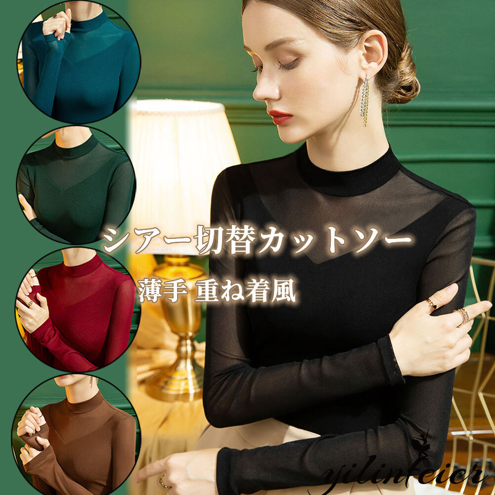 レディース トップス カットソー 長袖 ハイネック 重ね着 インナー レイヤード シャツ タートルネック シアー切替カットソー シースルー シアー カットソー 春秋冬 おしゃれ 透け 薄手