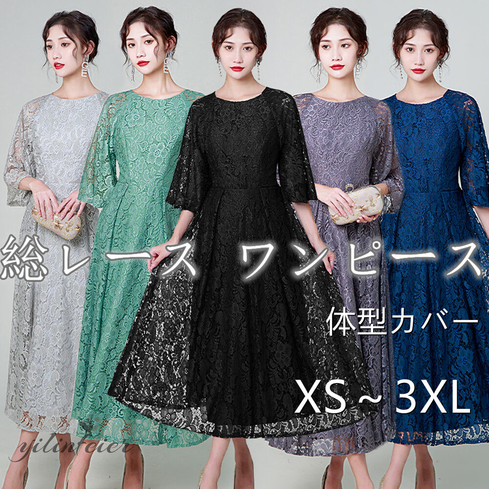 ワンピース ドレス Aライン レディース 結婚式 二次会 演奏会 ミディ丈 ロングドレス 膝下丈 ディナー 大きいサイズ 大人 上品 20代 30代 40代 春 夏 秋 冬 ロングドレス 二次会ドレス