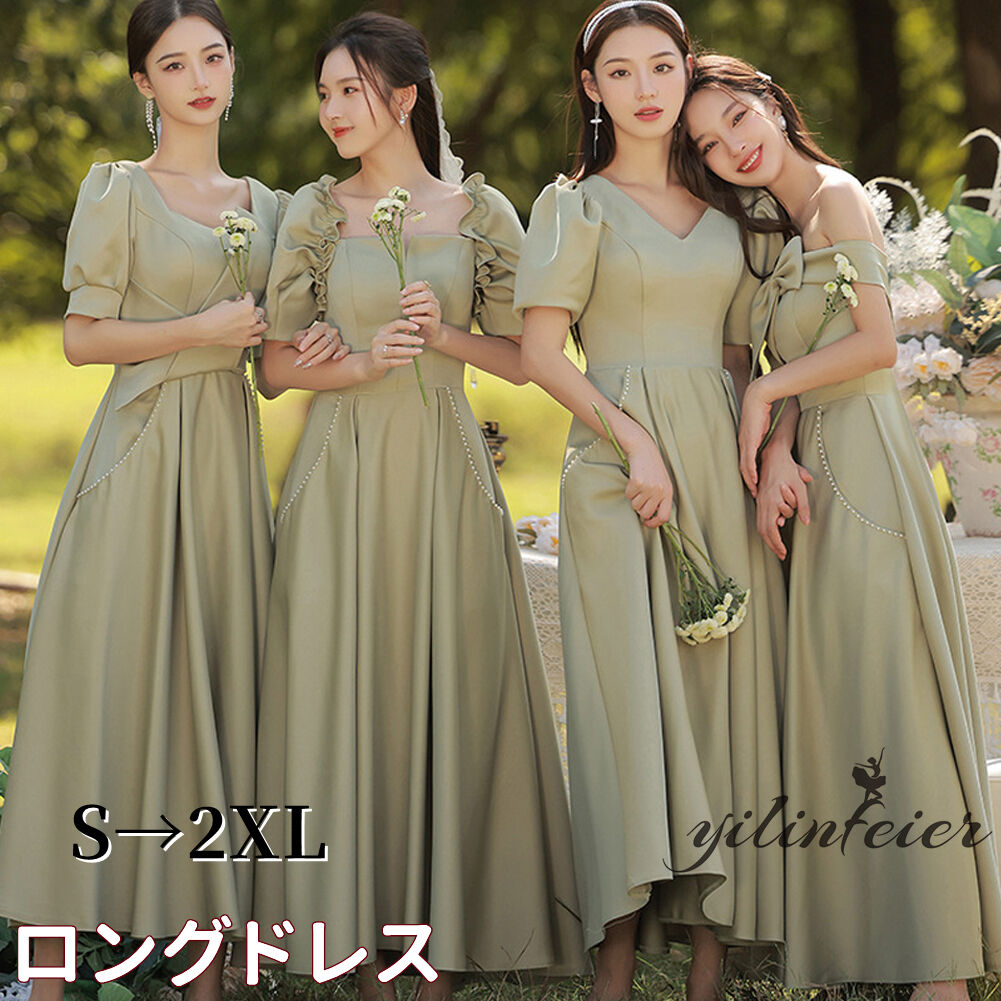 ブライズメイド ドレス ロング フォーマルドレス パーティードレス ライン フレア 結婚式 ワンピース マキシ丈ロング丈 記念日 ダンス衣装 ウェディングドレス 着痩せ 花嫁ドレス