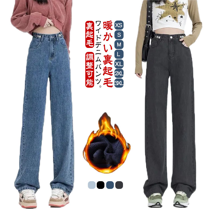 ワイドパンツ 裏起毛パンツ ゆったり 裏起毛 レディース ワイド ジーンズ あったか ウエスト調整可能 ゆったり カジュアル デニムパンツ