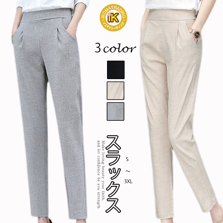 リネンパンツ レディース テーパードパンツ 9分丈 ビジネス OL ストレート 綿麻 スラックスレディースファッション ボトムス パンツ