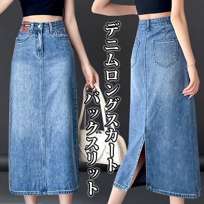 デニムスカート レディース デニムロングスカート タイトスカート ハイウエスト バックスリット 無地