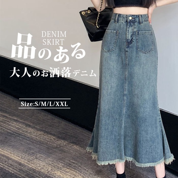 デニム スカート ロング レディース マーメイドスカート おしゃれ かわいい きれいめ ロンススカート