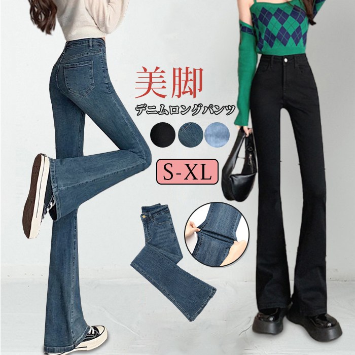 デニムパンツ レディース ジーンズ フレアパンツ ボトムス 着痩せ スキニーパンツ ハイウエスト ロング丈 カシュアル