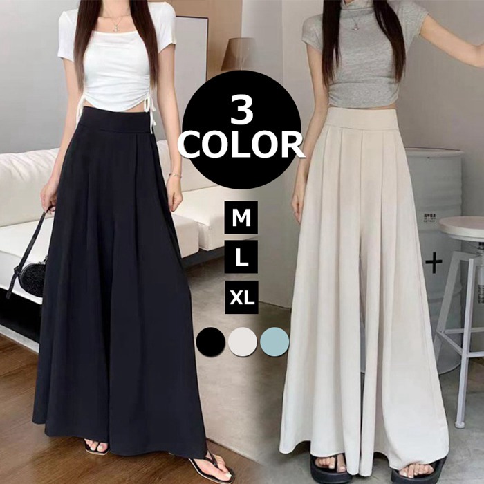 ワイドパンツ レディース スラックスパンツ プリーツ ロング丈 ガウチョパンツ ゆったり ボトムス パンツ 春 新作