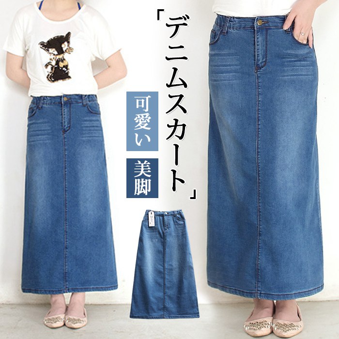 デニムスカート レディース タイトスカート ロングスカート 薄手 ロング丈 バックスリット ボトムス きれいめ 可愛い
