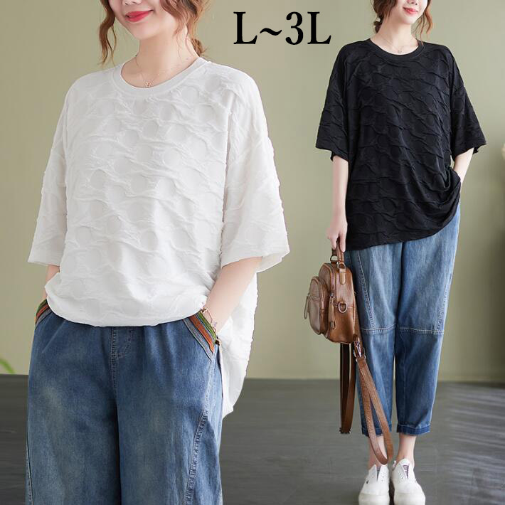 Tシャツレディース半袖大きいサイズきれいめシンプルトップスカットソー定番着痩せ無地ブラックホワイト夏ML2L3L