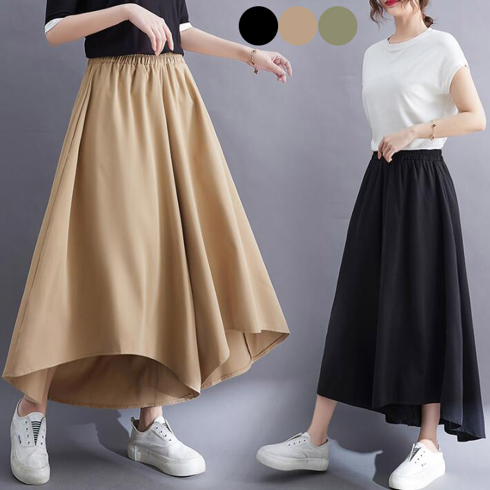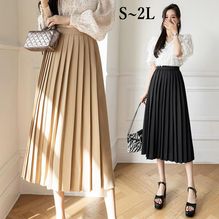 プリーツスカートプリーツAライン切替ロングスカート ミディアム丈膝丈スカート体型カバーデート 女子会フェミニンオフィス通年S M L 2L