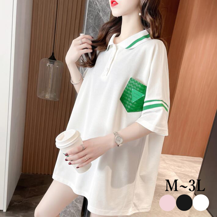 シャツレディース半袖大きいサイズきれいめシンプルトップスカットソー定番着痩せ無地ブラックホワイト夏23
