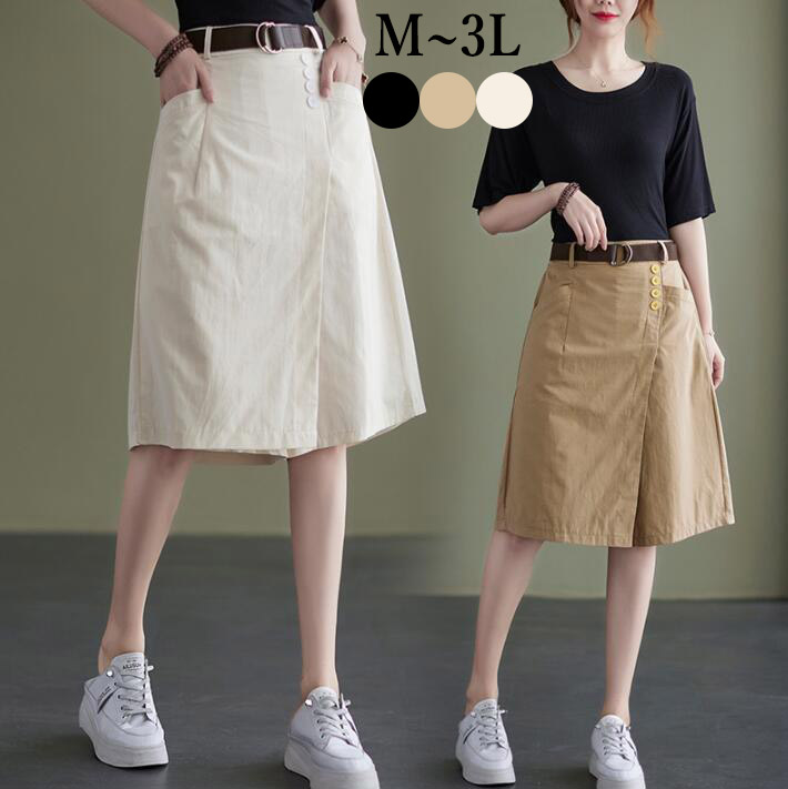 パンツワイドパンツラップパンツ巻パンツスカパンスカート風Aラインスカートバックゴムボトムス膝丈可愛いレディース夏ML2L3L
