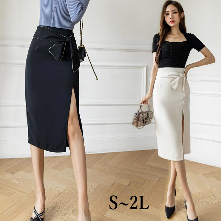 スカート タイトスカートリボンスリットセクシー ペンシルスカートロング ひざ丈 ハイウエスト大きいサイズデートストレッチオフィスOLお出かけSML2L
