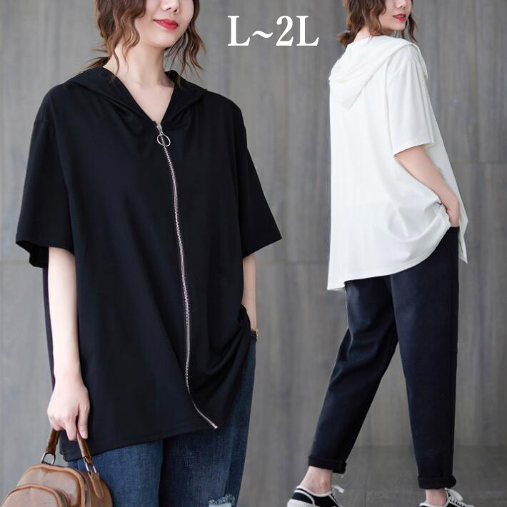 Tシャツレディース半袖フードジップアップトップスコーディネート大きいサイズ 夏L2Lレディースファッション トップス Tシャツ カットソー