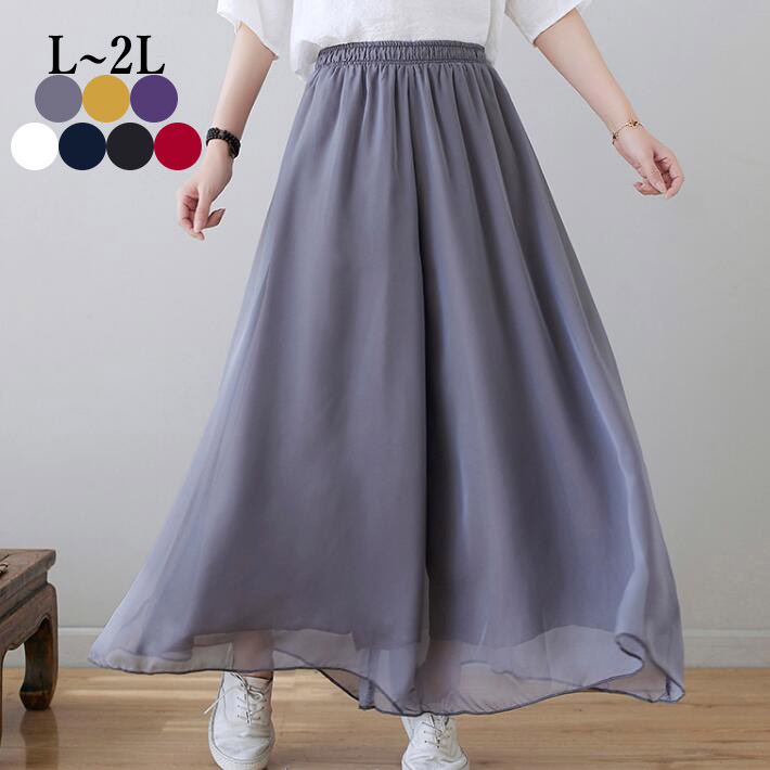 シフォンパンツワイドパンツガウチョパンツ スカーチョウエストゴム ガウチョ スカンツ ボトムス ズボン きれいめ揺れるレディースハイウェスト着痩せ大きいサイズ春夏 L2L